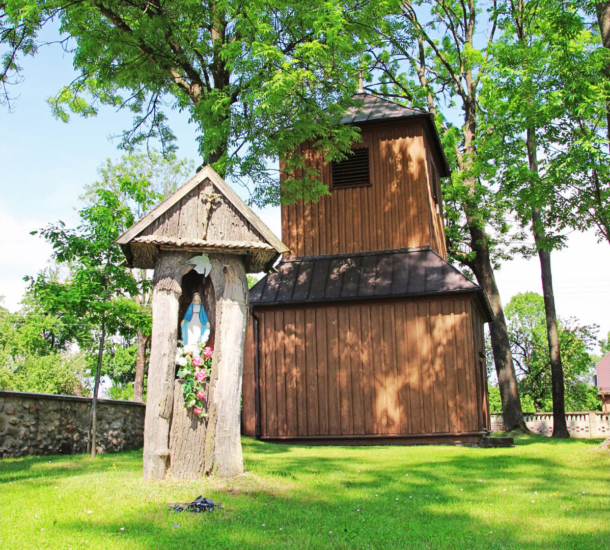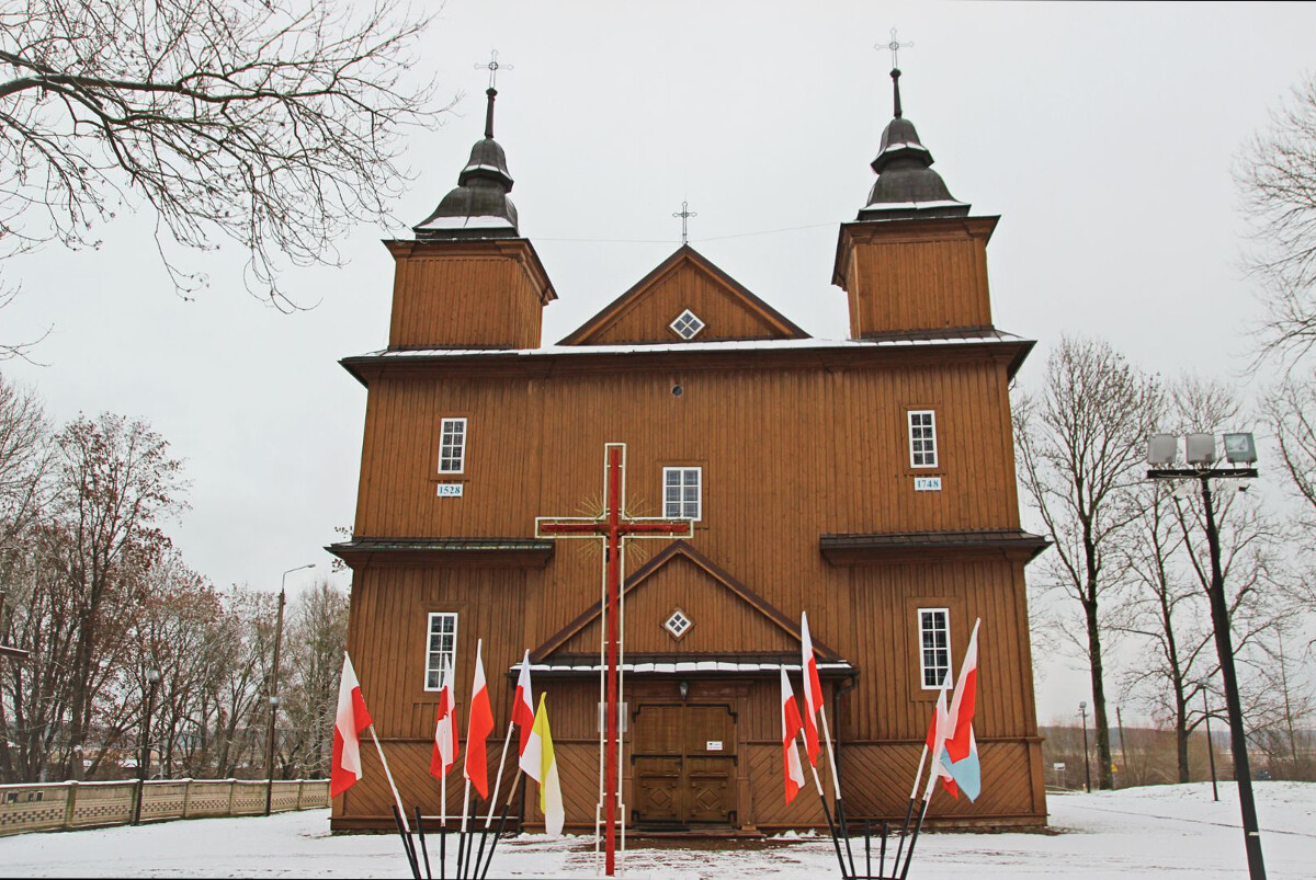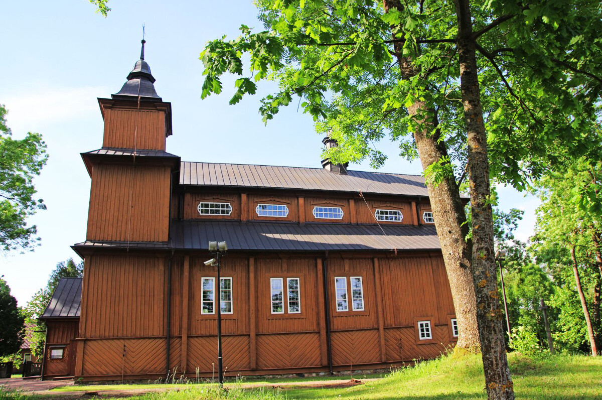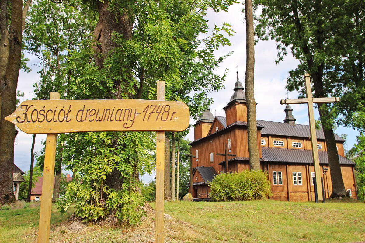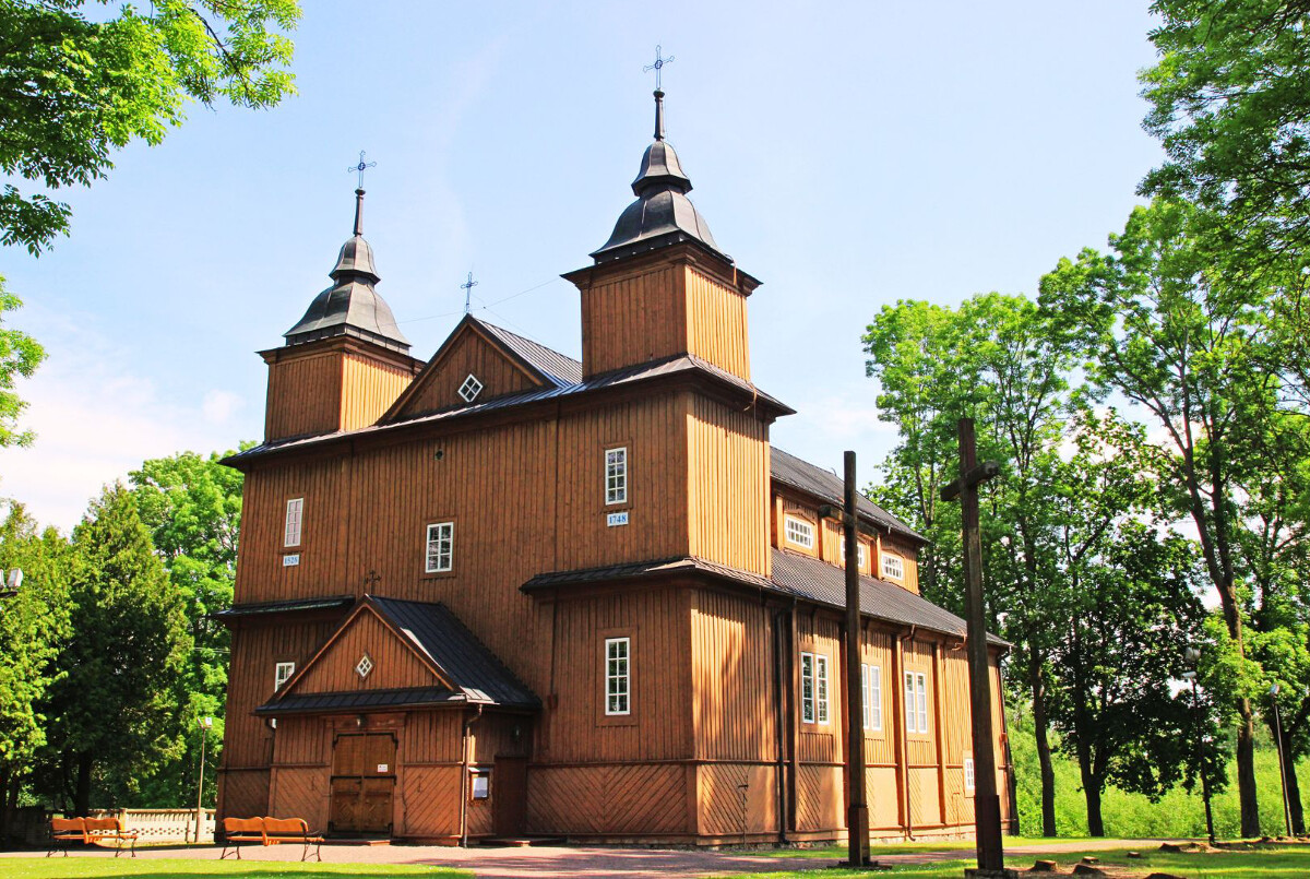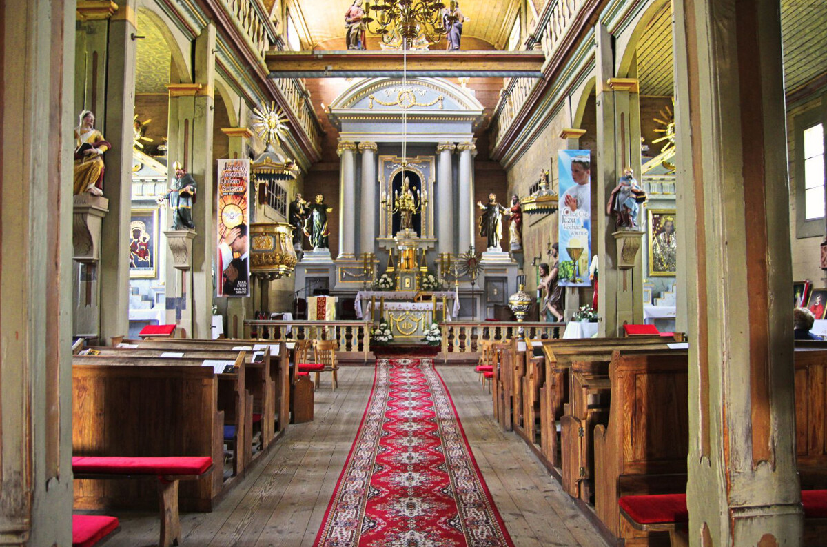 Z czasów jagiellońskich i nieco późniejszych zachowały się jedynie dwa unikatowe obrazy na desce, które dzisiaj można podziwiać wewnątrz kościoła. Świątynia już od progu olśniewa swoim klasycystycznym i barokowym wystrojem, z ołtarzem wielkim utrzymanym w porządku jońskim i barokowymi rzeźbami i wyobrażeniami postaci świętych, umieszczonymi w filarach międzynawowych. Obok kościoła wznosi się dwukondygnacyjna drewniana dzwonnica, pamiętająca czasy ostatnich królów Polski. Całość stanowi zjawiskowy majstersztyk drewnianej architektury sakralnej na Podlasiu, a zarazem niezwykle poetyczno-misteryjne miejsce, w którym bliskość rzeki i szumiących starych drzew wprowadzać może w głęboko medytacyjny nastrój. Tu poznasz więcej detali historycznych.