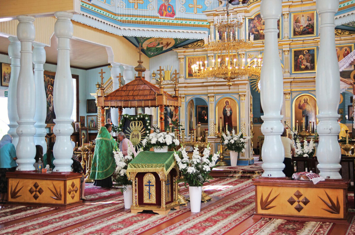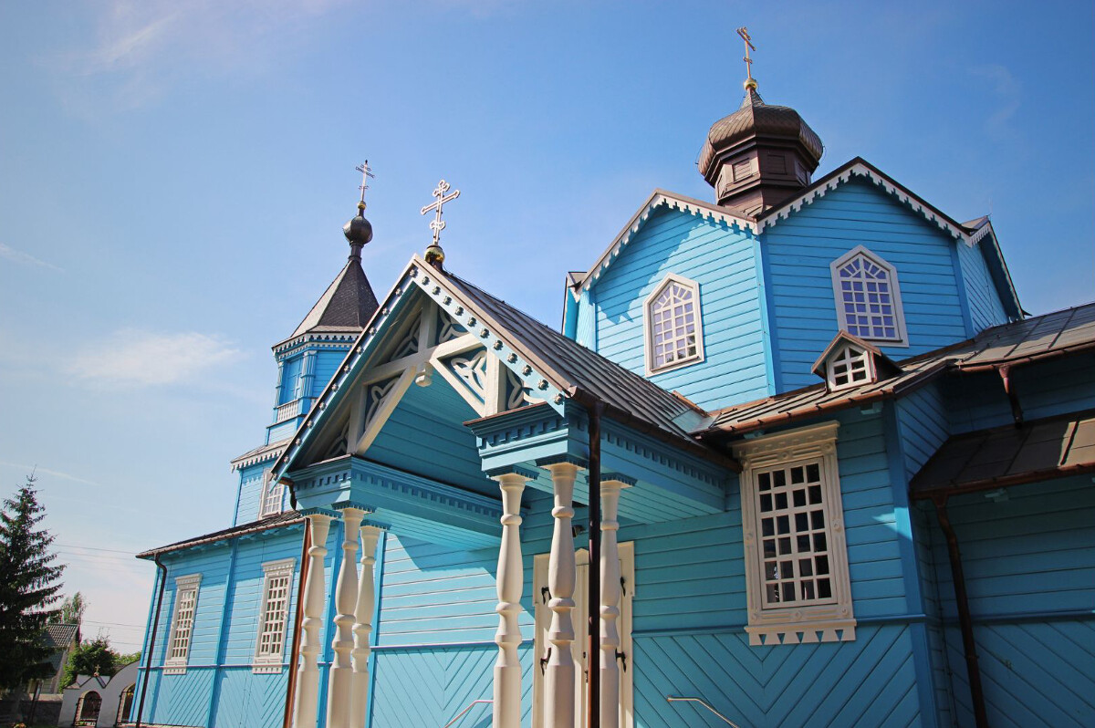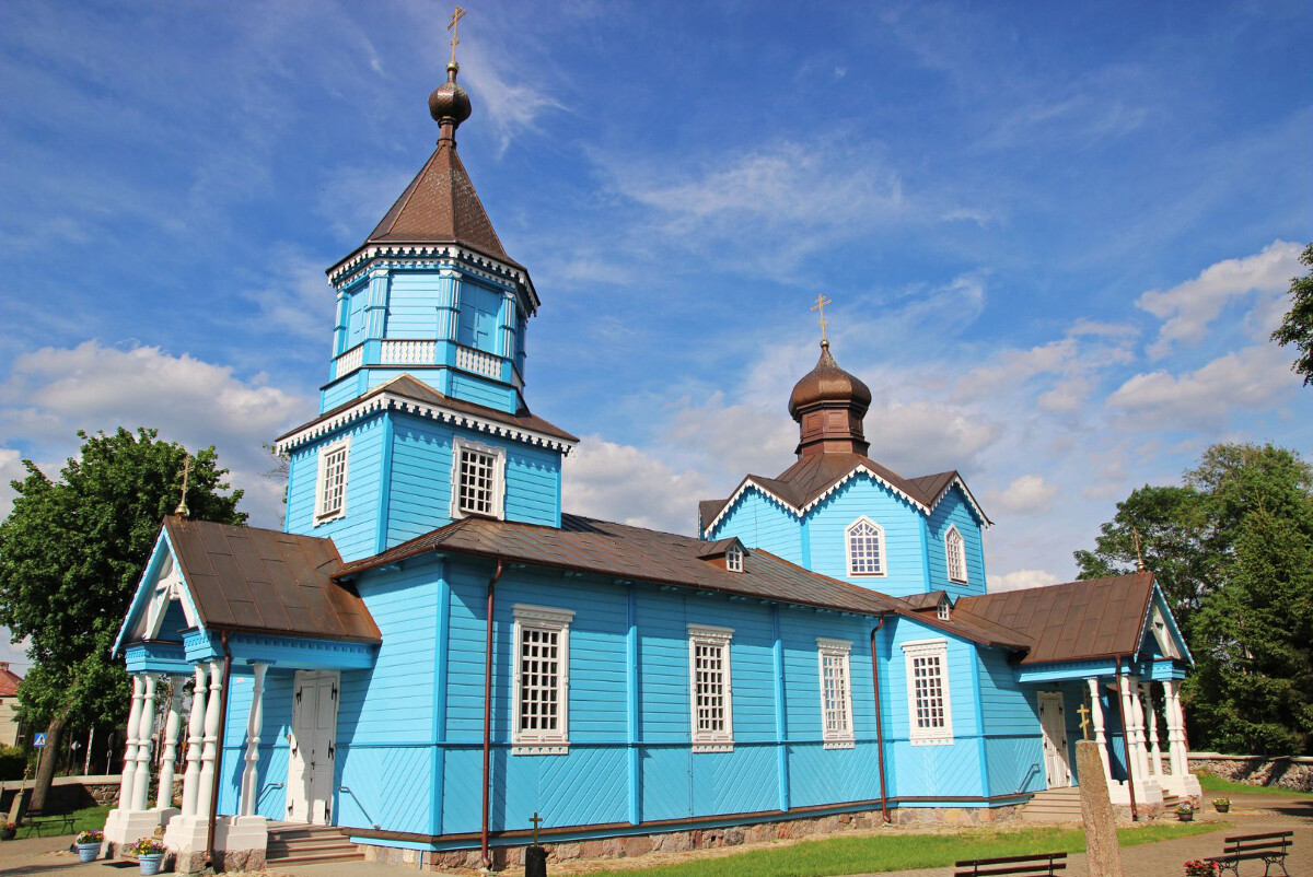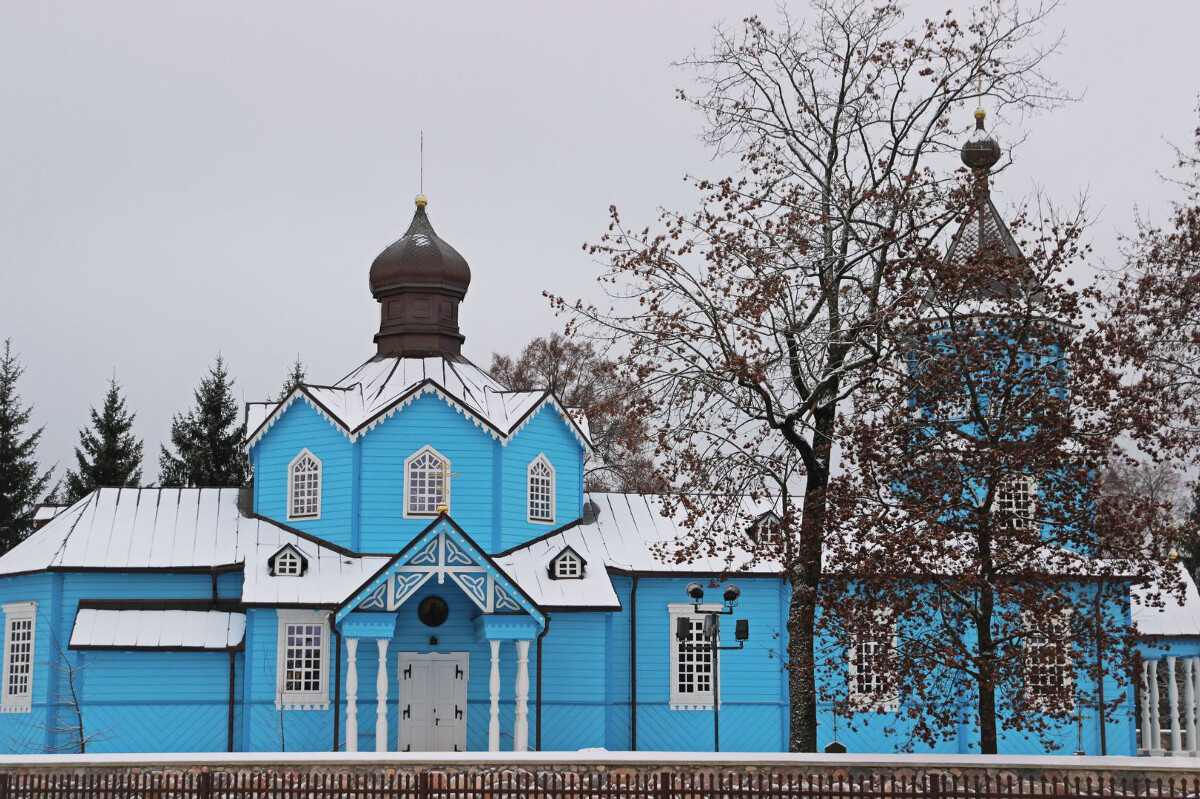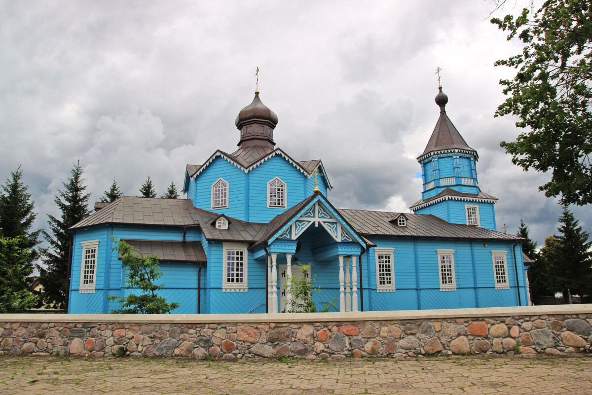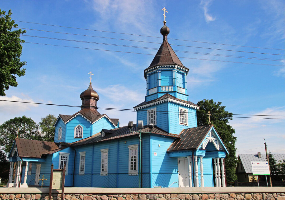 Nie zdołała go wyprzeć nawet całkiem treściwa zieleń, na którą pomalowano cerkiew po gruntownym remoncie i naprawie zniszczeń spowodowanych tragicznym pożarem z kwietnia 1990 roku. Ogień splądrował wówczas całe ponad stuletnie wnętrze i lwią część zabytkowych ikon. Na szczęście cała konstrukcja przetrwała, wypełniając się nowym obliczem ikonografii, utrzymanej w stylistyce współczesnego rosyjskiego malarstwa sakralnego. Dzisiaj narwiańska świątynia – jedna z wybitnych odsłon charakterystycznego dla naszego regionu stylu drewnianej architektury cerkiewnej – budzi zachwyt turystów, którzy mogą nawet zajrzeć do jej barwno-złotego wnętrza. Tutaj więcej informacji.